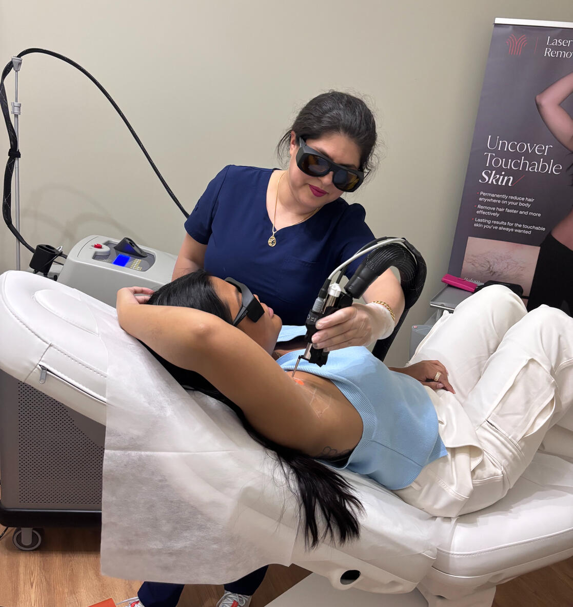 Sanjab is Led by an engineer-trained laser technician, every treatment is carefully customized for skin tone, hair type, and safety. We use the Cynosure Elite+ laser system to deliver safe, effective results for all skin tones.